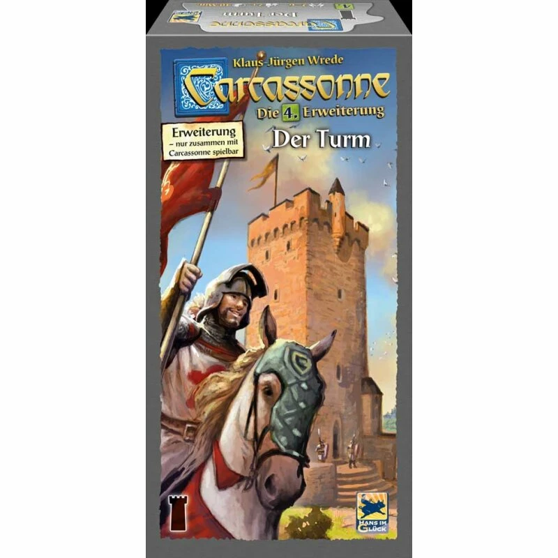 4. Erweiterung: CARCASSONNE wächst weiter. Diesmal in die Höhe. Neben 18 neuen Plättchen und 30 weiteren Turmteilchen aus Holz gibt es in dieser tollen Erweiterung einen Turm, der als Plättchenspender fungiert..