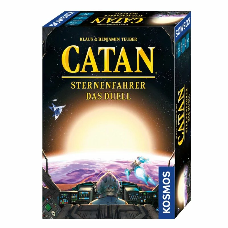 Auf Entdeckungsreise durchs All! Mit ihren Raumschiffen reisen zwei Spielerinnen oder Spieler durch die Weiten des Universums. Auch auf fernen Planeten lautet ihre Mission: handeln und bauen. Sobald ihre Raumschiffe startklar sind beginnt die Reise in die Tiefen des Weltraums auf der Suche nach Handelsplaneten und neuen Stützpunkten. Allerdings sind auch Piraten unterwegs, die von ihrem Reichtum profitieren wollen. Wer findet die richtige Strategie, erfüllt die unterschiedlichen Missionen und überwindet die Piraten? Der Einstieg in das Spiel gelingt leicht mit fünf Lernmissionen. Durch die dynamischen Kartenstapel verläuft jedes Spiel anders und bietet neue Herausforderungen! Die umfangreich überarbeitete Neuauflage des beliebten Abenteuers CATAN – Sternenschiff für zwei Personen ab 12 Jahren.