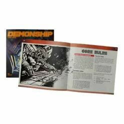Can you restore power to the ship, engage the emergency protocols (and the self-destruct sequence) and escape before it all goes to hell? Demon Ship is an approachable, fast paced micro game that takes up minimal time and space. Using unique mechanics, basic d6’s and a handful of miniatures, this game challenges players to use their wits and a fair bit of luck to blast their way out of the doomed Demon Ship.- The 45 page Demonship rule booklet (booklet size is around 6×6″)