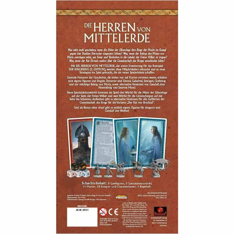 - 7 alternative Gefährtenkarten: Boromir, Gandalf, Gimli, Legolas, Meriadoc, Peregrin, Streicher