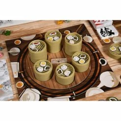 Dim Sum ist ein kompetitives Familienspiel für 2 bis 5 Personen ab 8 Jahren. Ihr kontrolliert je ein Tier aus dem chinesischen Horoskop mit eigenen Fähigkeiten. Dabei versucht ihr mehr als alle anderen zu essen, indem ihr euch die besten Bambusdämpfer mit Dim Sum holt. Falls ihr nicht rankommt, könnt ihr auch Schicksalskarten spielen oder den Tisch drehen.