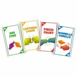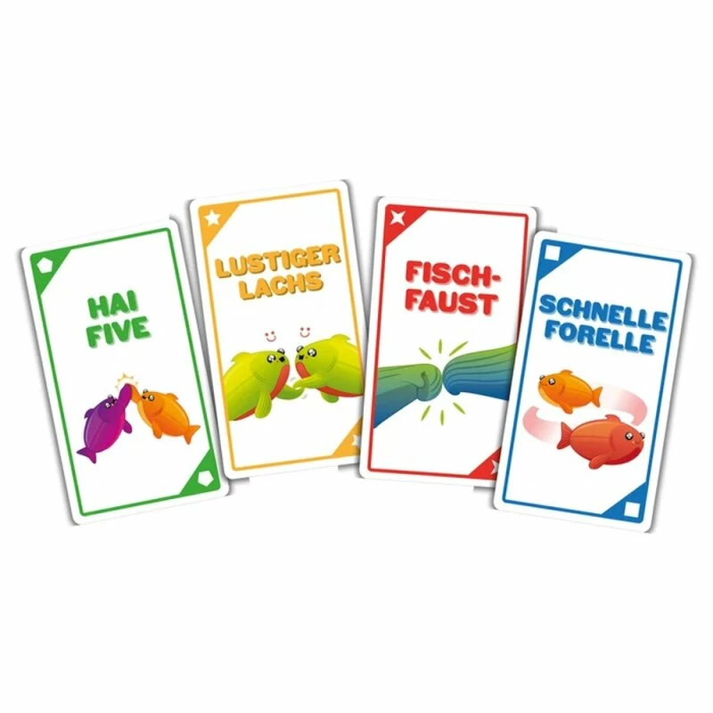 Auf jeder Karte steht eine von vier möglichen Aktionen, die man nur zu zweit durchführen kann. Ob Hai-Five, Fisch-Faust, Lustiger Lachs oder Schnelle Forelle: alle suchen gleichzeitig rufend und wild gestikulierend nach jemandem mit der gleichen Karte. Wenn zwei sich gefunden haben, führen sie die Aktion aus und werfen die beiden Karten ab. Wer zuerst alle Karten loswird, gewinnt!