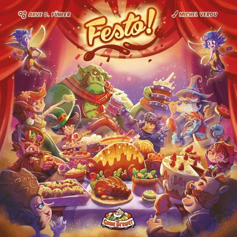 Im magischen Königreich Turinia steht ein großes Fest an. Als immer hungrige Halblinge gehen die Spieler auf den Markt, um allerlei wunderbare Zutaten von Elfen, Zwergen, Pixies, Trollen, Orks und Zauberern zu kaufen und daraus Gerichte zu kreieren, nach denen sich alle die Finger lecken. Doch in Festo! sind nicht in jeder Runde die Völker verfügbar, bei denen die Spieler gerne einkaufen möchten.