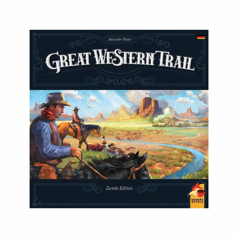 Great Western Trail ist ein von Kritikern hochgelobtes Spiel über Viehzucht von Alexander Pfister. Die Spieler versuchen ihre Herde durch die Prärie des Mittleren Westens zu treiben und sie nach Kansas City zu bringen. Aber Vorsicht! Die Cowboys teilen sich den Weg. Die zweite Edition verfügt über ein neues Design, doppellagige Spielerablagen und neues Spielmaterial. Außerdem gibt es eine Solo-Variante mit zusätzlichem Spielmaterial.