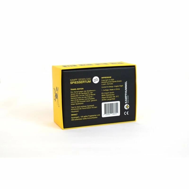 Die „Kampf gegen des Spießertum“-Version für die Handtasche, den Reisekoffer und den Festival-Beutel. Genauso böse wie das Original – aber etwas leichter und kompakter und mit 400 komplett neuen, gewohnt bösen Spielkarten.