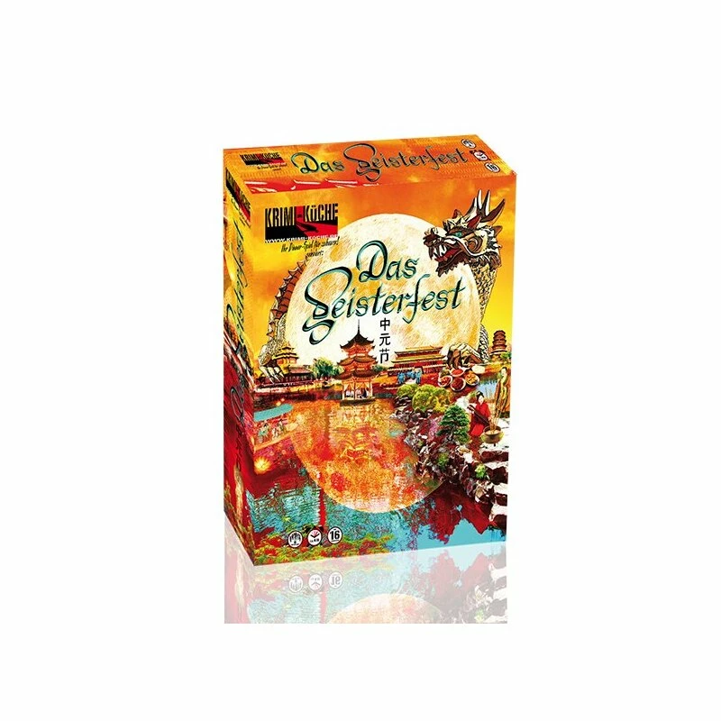 Willkommen zum Geisterfest – auch bekannt als das „Fest der hungrigen Geister“. Zu diesem Anlass hat der chinesische Kaiser ehrenvolle Gäste zu einem prunkvollen Dinner in seinen Palastgarten geladen. Zu schade nur, dass die Kaiserin auf Grund ihres unnatürlichen Ablebens keinen Biss der Köstlichkeiten verzehren konnte… Im Diesseits ist man entsetzt: welcher Gast hat es gewagt die Kaiserin zu ermorden? Folgen Sie den Spuren, verhören Sie alle Gäste und finden Sie den Mörder in Ihrer Runde!
