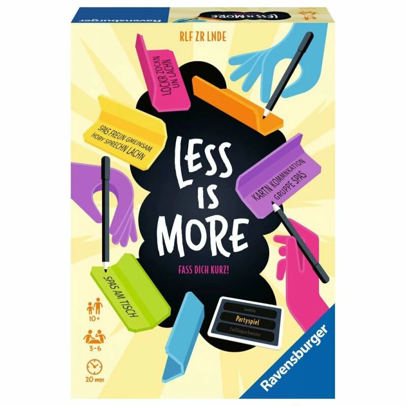 In jeder Runde wird einer der Spieler zum Rater. Die anderen Spieler erhalten einen Begriff, den sie nun versuchen mit möglichst wenigen Worten (und Buchstaben) zu beschreiben. Um „Berlin“ zu erklären, könnte man „Hauptstadt Deutschland“ schreiben. Oder vielleicht auch nur „Hauptst DEU“.Der Spieler, der am wenigsten Buchstaben benötigt und gleichzeitig vom Rater „verstanden“ wird, wird die meisten Punkte machen und das Spiel gewinnen.