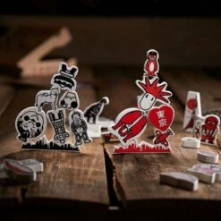 - Für den Druck auf Spielfiguren und Karton werden nur umweltfreundliche und wasserbasierte Farben ohne Chemie verwendet