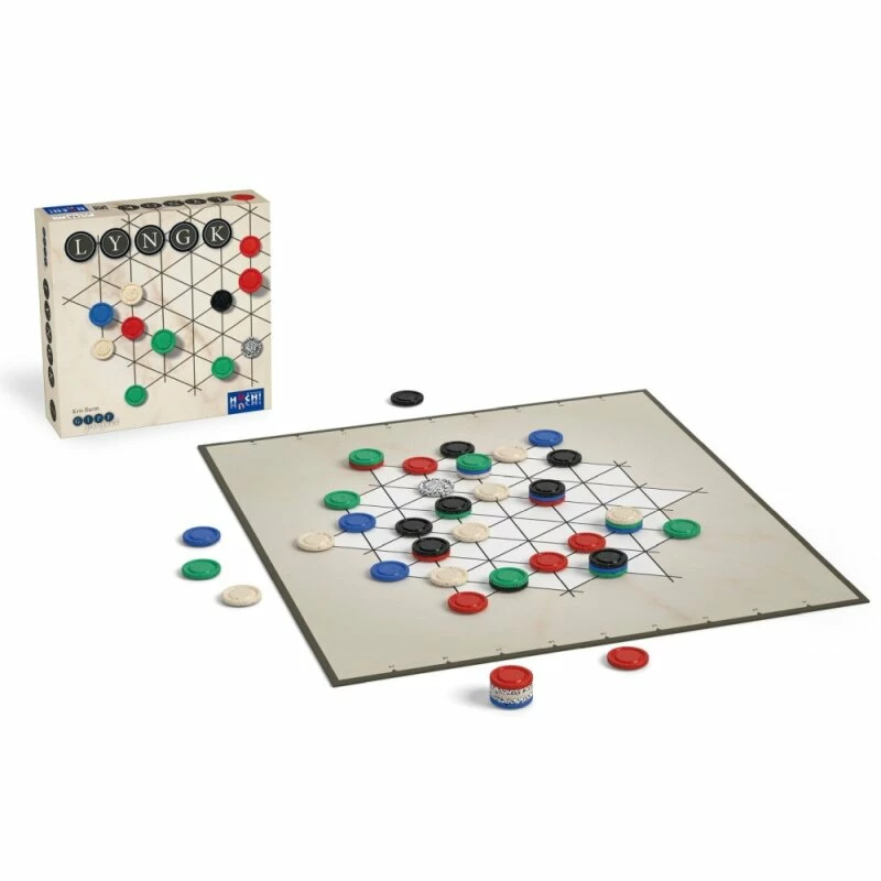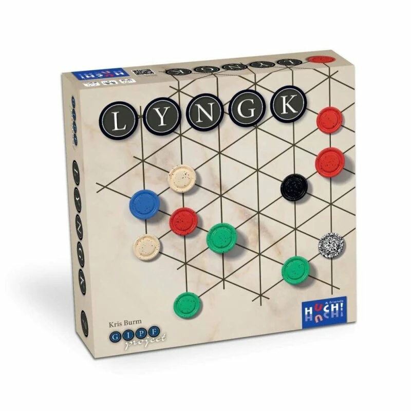 LYNGK ist die Synthese der ersten sechs Spiele des GIPF project und der perfekte Epilog der Serie. LYNGK wird mit 48 Spielsteinen in 6 unterschiedlichen Farben gespielt. Zu Beginn sind alle Farben neutral und gehören keinem Spieler. Im Laufe des Spiels müssen beide Spieler jeweils 2 Farben wählen. Ziel ist es, Stapel aus 5 Spielsteinen verschiedener Farben zu bilden, deren oberste Steine eine der beiden eigenen Farben zeigt. Wer clever taktiert, vorausschauend plant und die Möglichkeit von Mehrfachzügen über Steine der eigenen Farbe geschickt nutzt, gewinnt am Ende mit den meisten 5er-Stapeln.