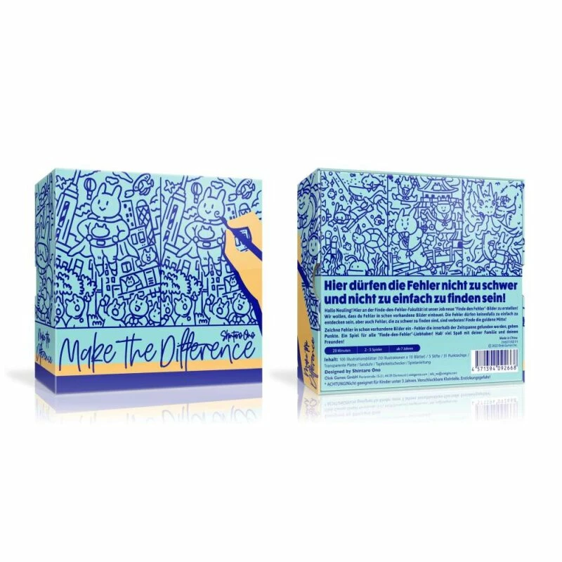 Sei willkommen, Frischling! Unser Job als AAA, dem „Abteil zur Ausarbeitung von Abweichungen“, ist es, Fehlersuchbilder zu kreieren. Wir wollen, dass du die bereitgestellten Bilder nimmst und Fehler einbaust. Aber nicht so hastig! Natürlich soll es einerseits nicht zu einfach werden, aber andererseits macht es auch keinen Spaß, wenn es zu schwer ist. Die Kunst ist es, genau die goldene Mitte zu treffen. Sollte es dir gelingen, innerhalb des Zeitlimits die Fehler zu finden, gibt’s Punkte! Dieses Brettspiel dreht sich um das Kreieren von Fehlersuchbildern und sollte von jedem mindestens einmal probiert werden!