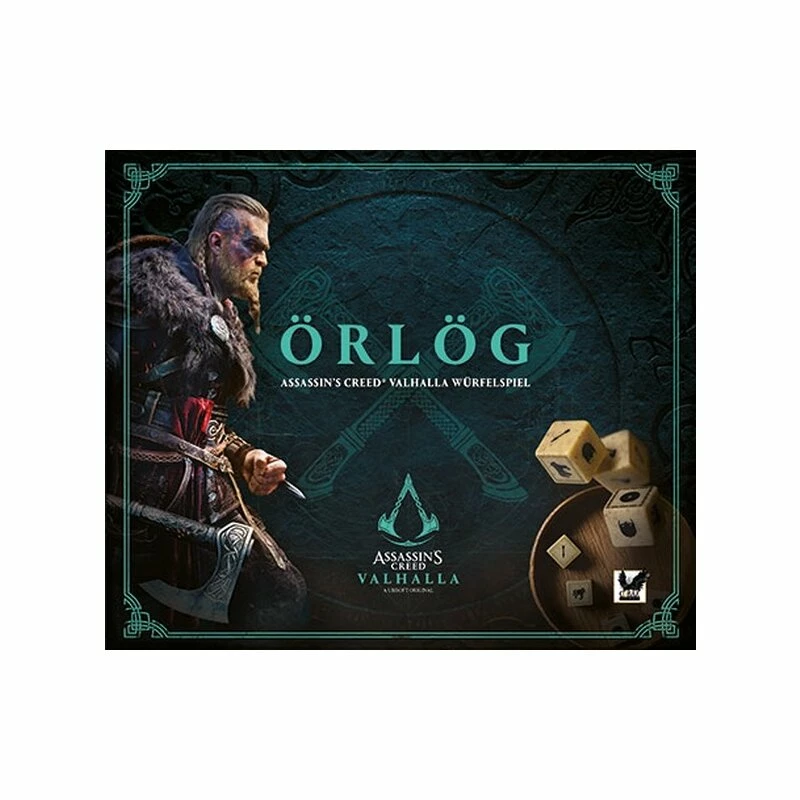 Gewinne die Gunst der Götter mit Örlög! Nutze deine Würfel taktisch klug und versuche dein Gegenüber zu besiegen! Bitte um Segnungen der Götter, um das Schicksal zu deinen Gunsten zu beeinflussen. Wirst du siegreich vor den Toren Valhallas stehen oder ein unrühmliches Ende in Helheim finden? Örlög ist die Brettspielumsetzung des beliebten Minigames aus dem Assassin´s Creed Valhalla Computerspiel. In diesem Würfelspiel für 2 tapfere Wikinger versucht ihr durch taktisches Einsetzen eurer Würfel eurem Gegenüber die Lebenspunkte zu nehmen. Entscheidet klug, welche Würfelsymbole ihr beiseite legt und welche ihr lieber neu würfeln wollt. Behaltet dabei immer die Würfel eures Gegenübers im Auge!
