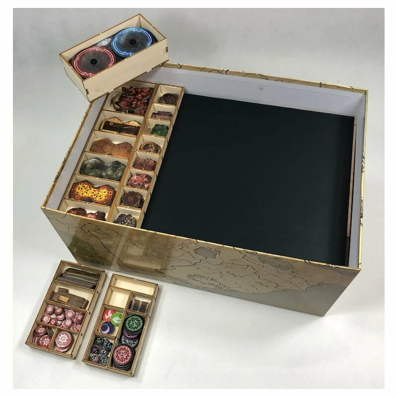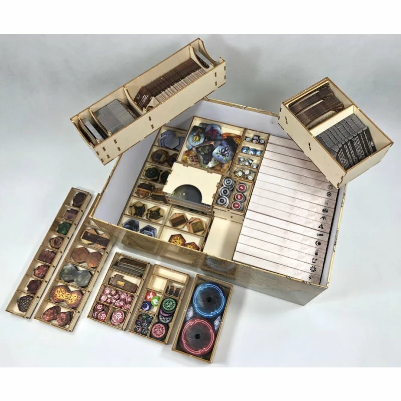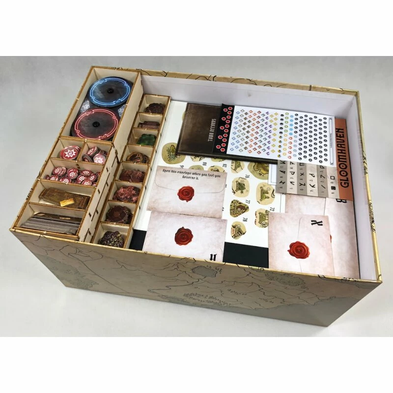 Wooden organizer compatible with Gloomhaven, made from 3mm birch plywood.