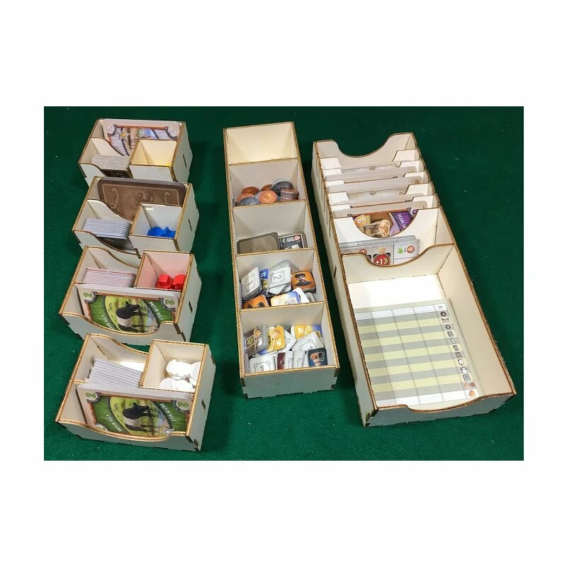 Wooden organizer compatible with Great Western Trail, made from 3mm birch plywood.