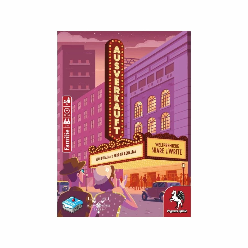 In Ausverkauft ist es Ziel der Spielenden, ihr eigenes Theater bestmöglich mit Gästen zu besetzen. Dazu liegen in jeder Partie des Share & Write Spiels vier Wertungskarten aus, deren Bedingungen es zu erfüllen gilt. In jeder Runde müssen die Spielenden genau eine Ticketformation in ihrem Theater eintragen. Wie genau diese Formen aussehen, verändert sich im Laufe des Spiels, denn jede*r Mitspielende modifizert pro Runde genau ein Ticket. Zu Beginn jeder neuen Runde werden dann die Tableaus mit den Tickets weitergegeben, sodass die Anpassungen nun auch für die Mitspielenden relevant werden. Platzanweiser-Fähigkeiten erlauben es jede Runde außerdem, entweder Siegpunkte zu nehmen oder eine Sonderfähigkeit auszuspielen.