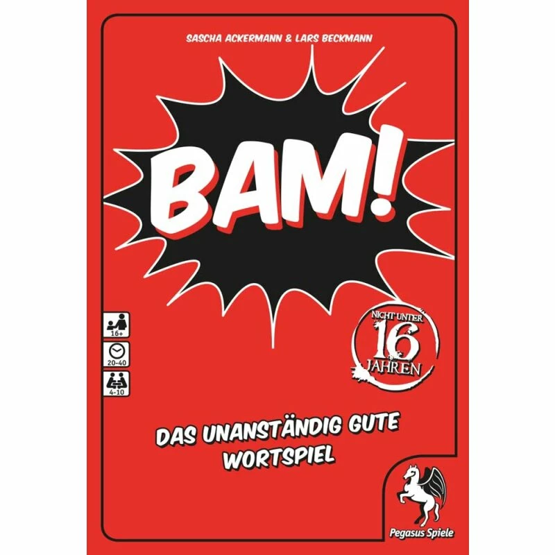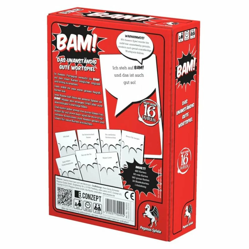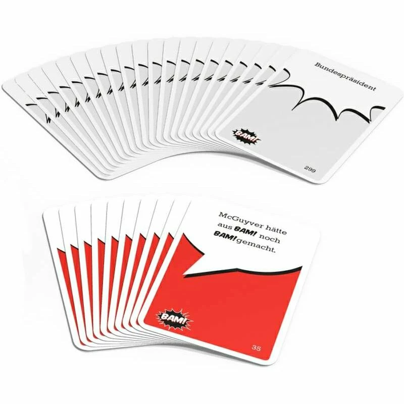 BAM! ist das unanständig geniale Partyspiel, das garantiert für jede Menge Spielspaß sorgt! Hier gleicht keine Runde der anderen! In diesem einfach witzigen Partyspiel besteht die Aufgabe jedes Spielers darin, die Lückentexte mit Begriffen zu füllen und mit dem Ergebnis zunächst den BAM!-Master und dann seine Mitspieler zu begeistern. Wenn die Frage „Deutschland sucht BAM!“ lautet, sind die auf fast 400 Karten verfügbaren Begriffe durchaus hilfreich.