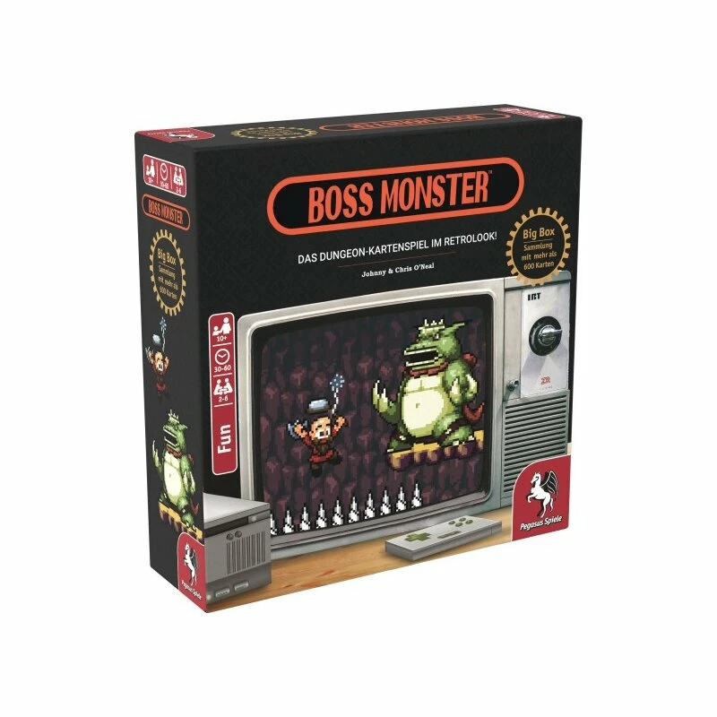 Boss Monster bietet den Spielenden die Chance, der ultimative Bösewicht zu werden: der Boss des eigenen Dungeons im Stil eines Sidescroller-Videospiels! Für alle, die jemals Stunden damit verbracht haben, durch die pixeligen Gefahren eines 8-Bit-Dungeons zu navigieren, ist Boss Monster genau das Richtige! Die bis zu sechs Spielenden locken unglückselige Held*innen mit den passenden Schätzen in den selbst gebauten Dungeon, um deren Seelen zu verschlingen. Aber Achtung: Der Dungeon muss so tödlich sein, wie er verführerisch ist, oder diese kümmerlichen Eindringlinge werden lange genug überleben, um den Bossraum zu erreichen und das Boss Monster zu verwunden. Die beste Bestie gewinnt!