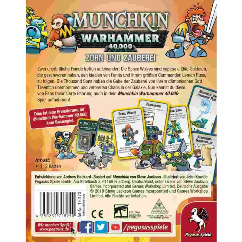 Zwei unerbittliche Feinde treffen aufeinander! Die Space Wolves sind imperiale Elite-Soldaten, die geschworen haben, den Idealen von Fenris und ihrem größten Commander, Leman Russ, zu folgen. Die Thousand Sons haben die Gabe der Zauberei von ihrem dämonischen Gott Tzeentch übernommen und verbreiten Chaos in der Galaxie. Nun können Munchkin-Spieler diese von Fans favorisierte Paarung auch in ihr Munchkin Warhammer 40.000-Spiel aufnehmen!