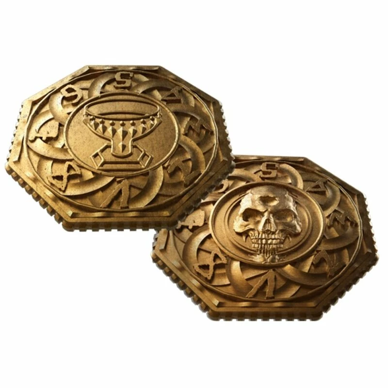 Reichet Gold eurem… Menhir! Dieses Münzset ist ein kosmetisches Add-on für Tainted Grail und ersetzt die 10 Plastikmünzen aus dem Grundspiel gegen edle Metallscheiben.
