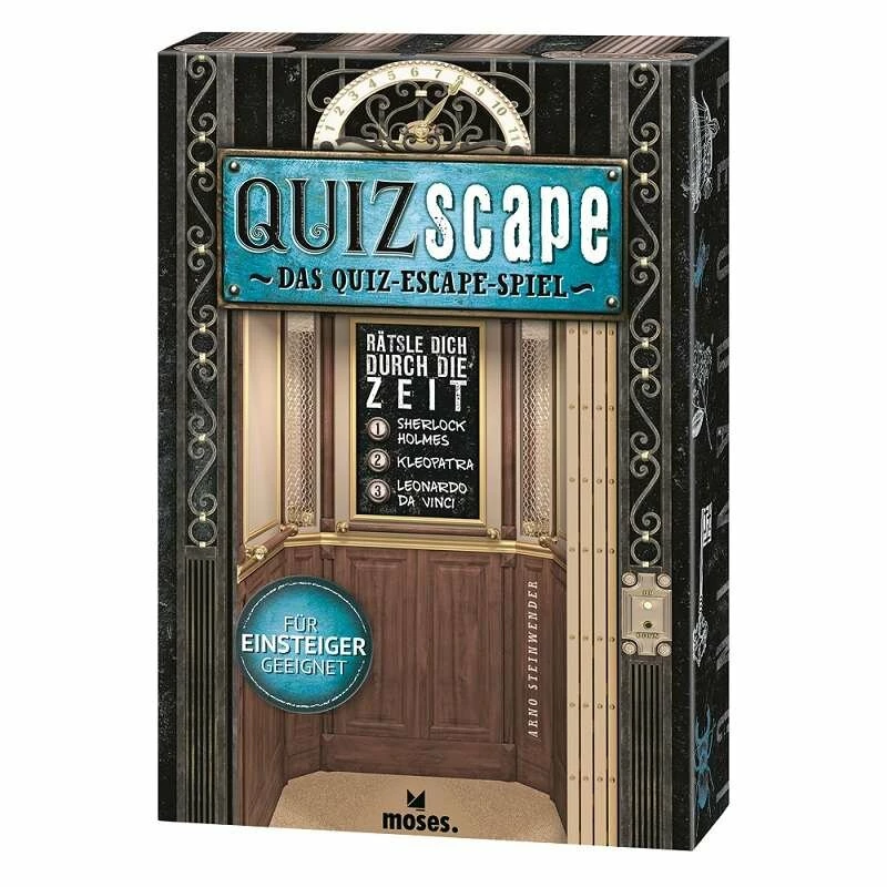 QUIZscape vereint das Beste aus zwei Welten: Das absolute Trendthema Escape-Spiele trifft hier auf das allseits beliebte Quiz. Eingebettet in eine spannende Zeitreise-Geschichte, erleben die Spieler drei abwechslungsreiche Abenteuer voller Rätsel, Quizfragen und Überraschungen.