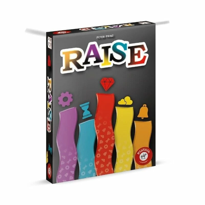 Raise ist ein abstraktes Familienspiel mit 7 Spezialwürfeln und 165 Karten.