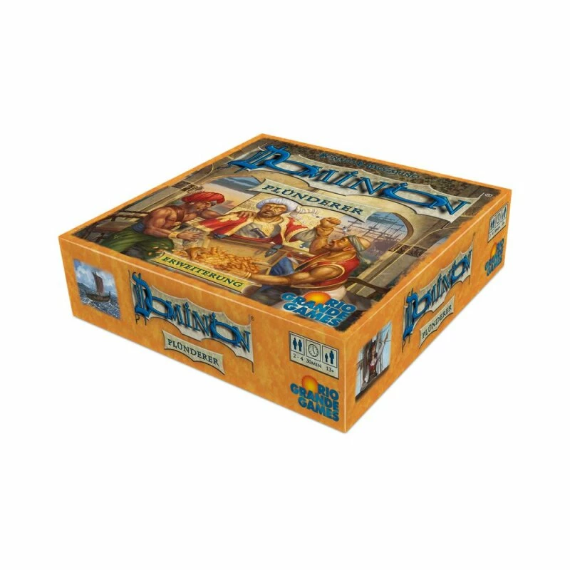 Jetzt wird geplündert – mit Dominion Plünderer erscheint 2023 die 15. Erweiterung zum Spiel des Jahres 2009. Mit ihr kommen 500 neue Karten ins Spiel, darunter viele neue Ereignisse, Dauer- und Geldkarten, die Kostbarkeiten geben. Neu sind die Merkmale, deren Eigenschaften einen ganzen Kartenstapel verändern können. Wieder enthalten sind Trenner für die separat erhältliche Sammlerbox.