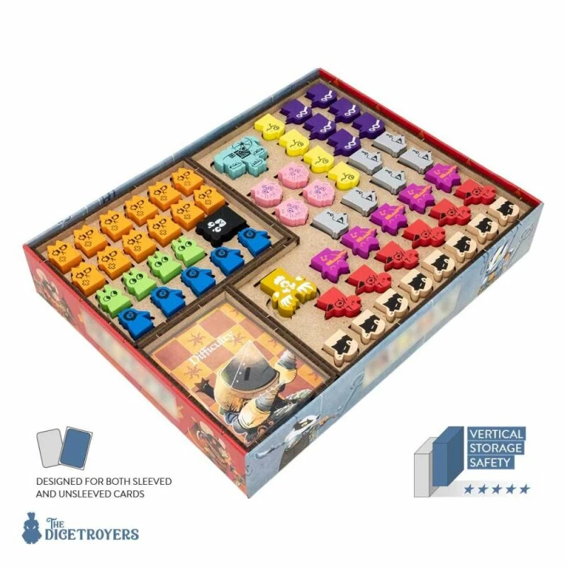 Wichtig! Aufgrund von Herstellungs-, Druck- und Editionsunterschieden können die Schachtelgrößen variieren und sind möglicherweise nicht mit der Version kompatibel, für die unsere Produkte entwickelt wurden. Bitte messen Sie den Boden Ihrer Spieleschachtel, um zu überprüfen, ob die oben aufgeführten Maße des Organizers passen.