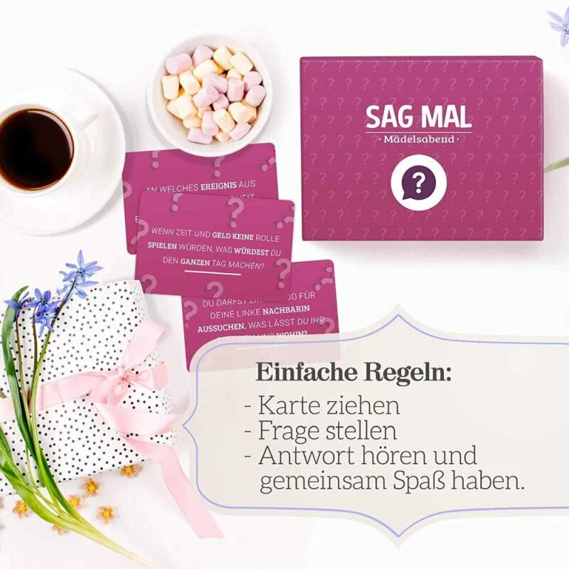 Ihr denkt, ihr wisst schon alles über die Anderen? Probiert es aus und stellt Euch gegenseitig bei diesem Spiel Fragen, die teilweise echt prickeln sind. Also Mädels, steigt in den Kuschelpyjama und holt den gekühlten Sekt aus dem Eisfach – die Stimmung wird noch hitzig genug!