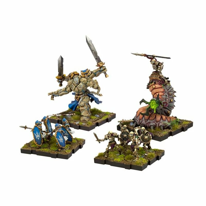 Terrinoth ist ein Land voller Legenden. Die Welt erinnert sich an den Marsch von prächtigen Bannern und tapferen Taten. Sie flüstert von der Tapferkeit derer welche von der dunklen Vergangenheit besiegt wurden. Ihr stilles Lied zündet die Glut der Hoffnung in denjenigen an, welche der endlosen Nacht entgegen treten. Vergessene Magie und verlorene Erbschaften warten darauf wiederentdeckt zu werden, von denen die tapfer genug sind sie zu suchen. Die großen Armeen Terrinoths haben sich auf den Weg in die Schlacht begeben. Untote unter Waiqars Kommando haben sich über die Grenzen der Nebellande hinausgewagt und versuchen das Reich Terrinoth zu unterwerfen. Ihnen gegenüber stehen die furchtlosen Krieger und Golems unter dem Kommando der Herren von Daqan. Du wirst bald deinen Platz als Kommandant einnehmen und über ihr Schicksal befehligen. Im neuen Runewars: Miniaturenspiel kannst du die Schlachten Terrinoths so lebendig wie nie zuvor gestalten. Bist du tapfer genug dich gegen den dunklen Baron Waiqar und seiner Armee aus Untoten zu stellen? Oder schließt du dich ihnen sogar an?