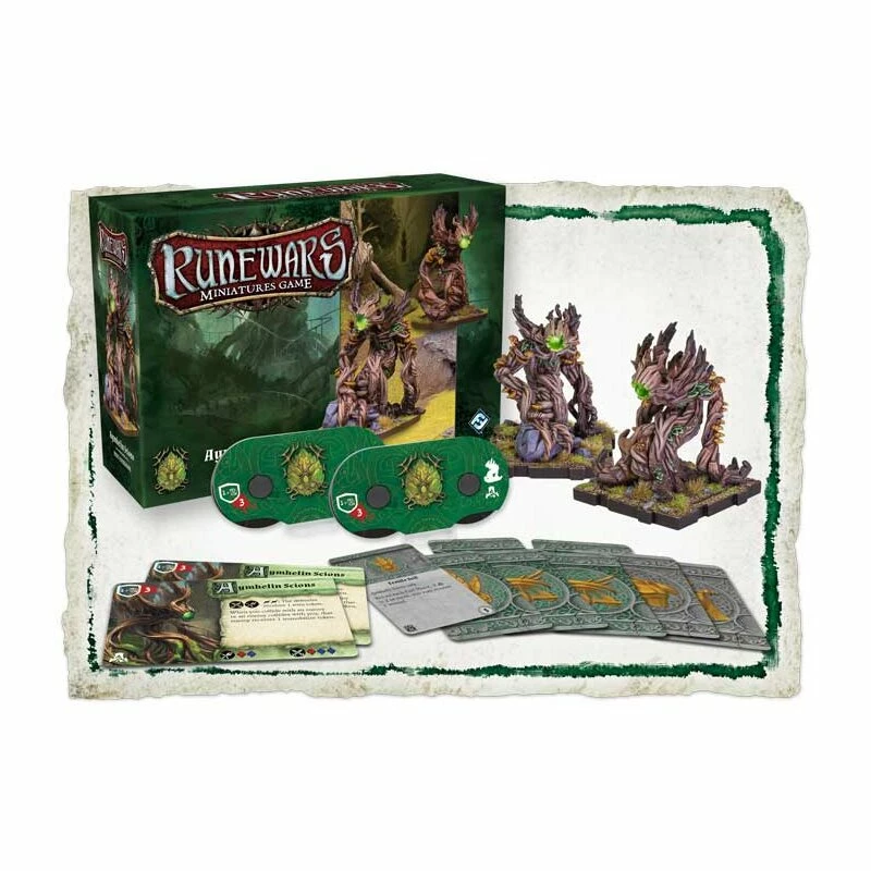 Die Ableger des Aymhelin stellen die Macht des Waldes dar und bestehen aus zwei neuen Miniaturen, acht Aufwertungskarten und zwei.