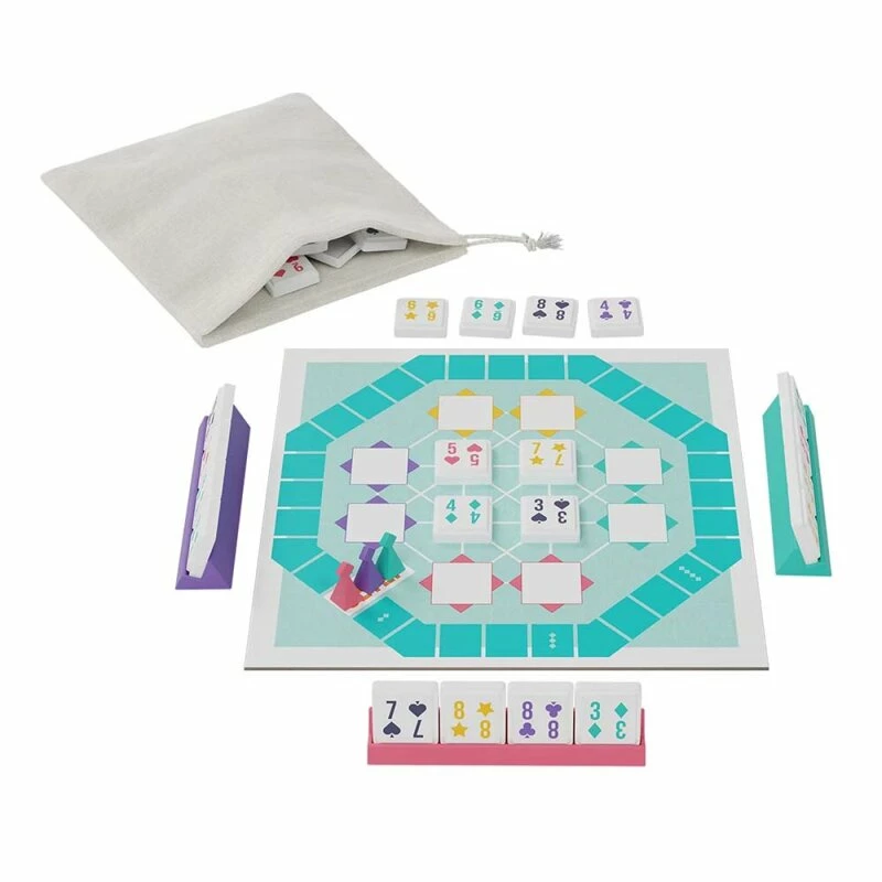 - Hochwertiges Spielmaterial mit 50 stapelbaren Karten-Spielsteinen