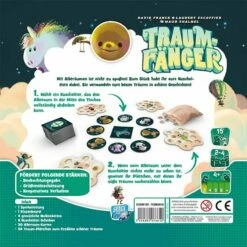 Dreamcatcher ist ein Brettspiel für Kinder ab 4 Jahren. Tauche in deine Träume ein und wähle jedes Mal, wenn du an der Reihe bist, das richtige Kuscheltier, um die Gestalt des Albtraums vollständig zu verdecken. Aber pass gut auf, denn je kleiner dein Kuscheltier ist, desto mehr bringt es dir Traummarken, um deine Wolke zu füllen!