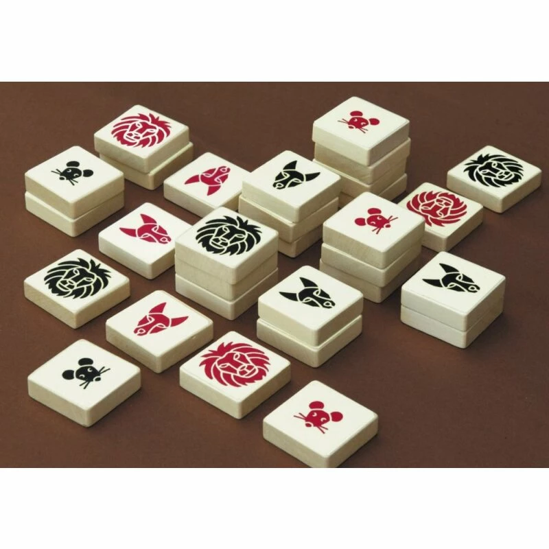 Ein taktisches Schlagspiel für zwei Personen in dem jede Seite über ein Team aus Löwen, Schakalen und Mäusen verfügt. In zufälliger Verteilung treffen die Tiere aufeinander und müssen sich auf dem variablen Spielfeld mit ihren jeweiligen Fähigkeiten behaupten. Geschlagen wird nicht durch Wegnehmen, sondern Überdecken eines Steins. Der höchste Stein eines Turms zeigt den jeweiligen Besitzer an, alle darunter sind „gefressen“.