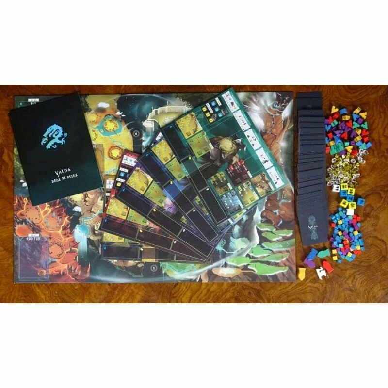 In Valda beendet jeder Spieler in seinem Zug 5 Phasen. Als Wikingerhäuptling würfeln Sie, um seltene Ressourcen für Ihren Stamm zu ernten. Dann erforschen und erkunden Sie die Welten, indem Sie Karten ziehen und Aktionen nutzen. Der Bau von Tempeln in den verschiedenen Gottdomänen ist ein wichtiges Ziel, um göttliche Fähigkeiten zu erlangen und Zugang zu mächtigeren Zaubersprüchen zu erhalten. Aber Vorsicht, Feinde können dich mit den Waffen der Götter angreifen. Verteidige dich und setze deine Ressourcen und Schilde mit Bedacht ein. Kämpfe und baue mit Ehre, um die Gnade der Götter zu empfangen. Welcher Gott? Das hängt von deinem Spielstil ab. Du magst den aggressiven Spielstil, dann ist Surtur dein Mann, du magst es, viele Optionen zu haben, um irgendwann die ultimative Combo zu verwenden, dann ist Freya die richtige für dich und so weiter. Es ist Ihr einziges Ziel, einen Platz am Tisch des schönsten asgardischen Palastes neben Odin und Thor zu haben. Indem Sie Karten spielen, Ihre Fähigkeiten einsetzen und Tempel bauen, gewinnen Sie auch wertvolle Anhänger. Der Wikingerhäuptling, der am Ende des Spiels die meisten Anhänger hat, ist es wert, auf den Weltbaum Yggdrasil zu klettern und wird ein Gott! Oh .. und er gewinnt auch das Spiel.